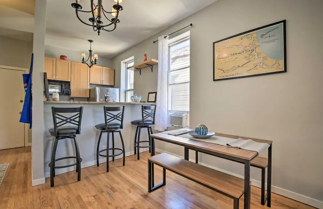 The apartment is situated in West Town with a busy stretch of West Chicago Avenue, dotted with New American restaurants and cafes, just a short stroll away from Polish Museum of America. This 1-bedroom property is placed near Chicago underground station, only a 10-minute walk away, and approximately 10 minutes by car from The Art Institute of Chicago. You can also reach the super-tall skyscraper "Willis Tower", which is around 3.1 km away.